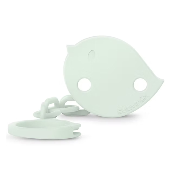 El broche pinza redondo de Suavinex está disponible en unos diseños a juego con los biberones y chupetes de esta propuesta con tetina fisiológica SX Pro.
