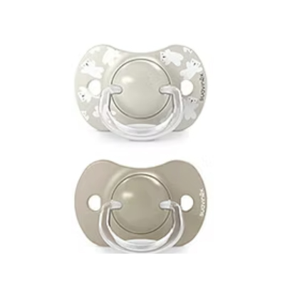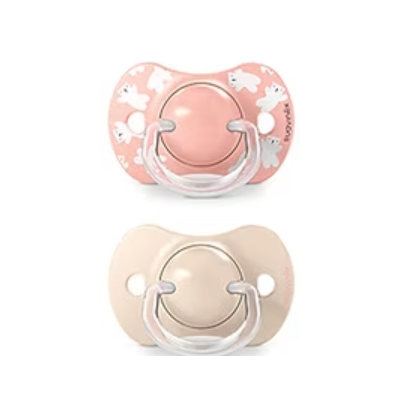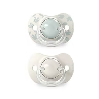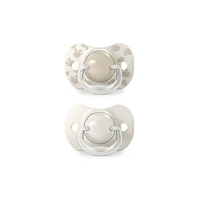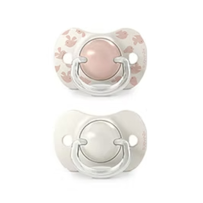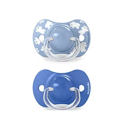 Tetinas de chupetes avaladas por la Sociedad Española de Odontopediatría, SEOP y, aconsejadas por la Asociación de especialistas Italianos en Ortodoncia, ASIO. La tetina fisiológica, más estrecha y plana en la base, permite que el chupete quede bien colocado en la boca del bebé, ejerciendo la mínima presión sobre el paladar.